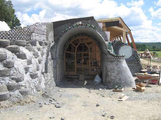 Today we chipped away at more plumbing inside the house, more digging of wall and doorway footers, and finishing screwing the roofing and fastening the flashing to the ventilation boxes. I was really excited when they started opening the boxes of our greenhouse slanted glass! Brian, Nick, Osmany, Rob, Smiley and maybe more that I didn't see carried over and installed all of our exterior glass today! It looks more and more like a house every day!